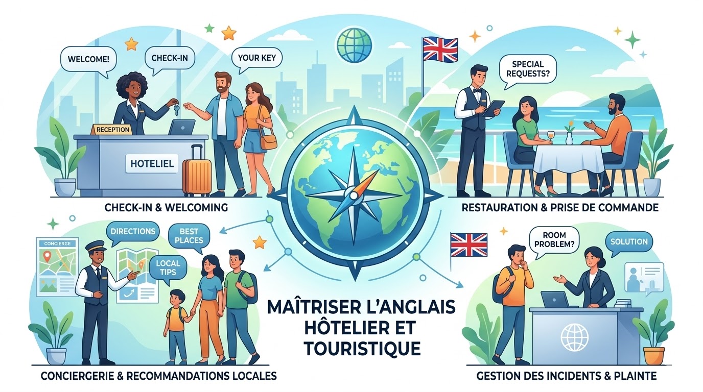 Acquérir les outils linguistiques indispensables pour accueillir au mieux les visiteurs ou les clients.
